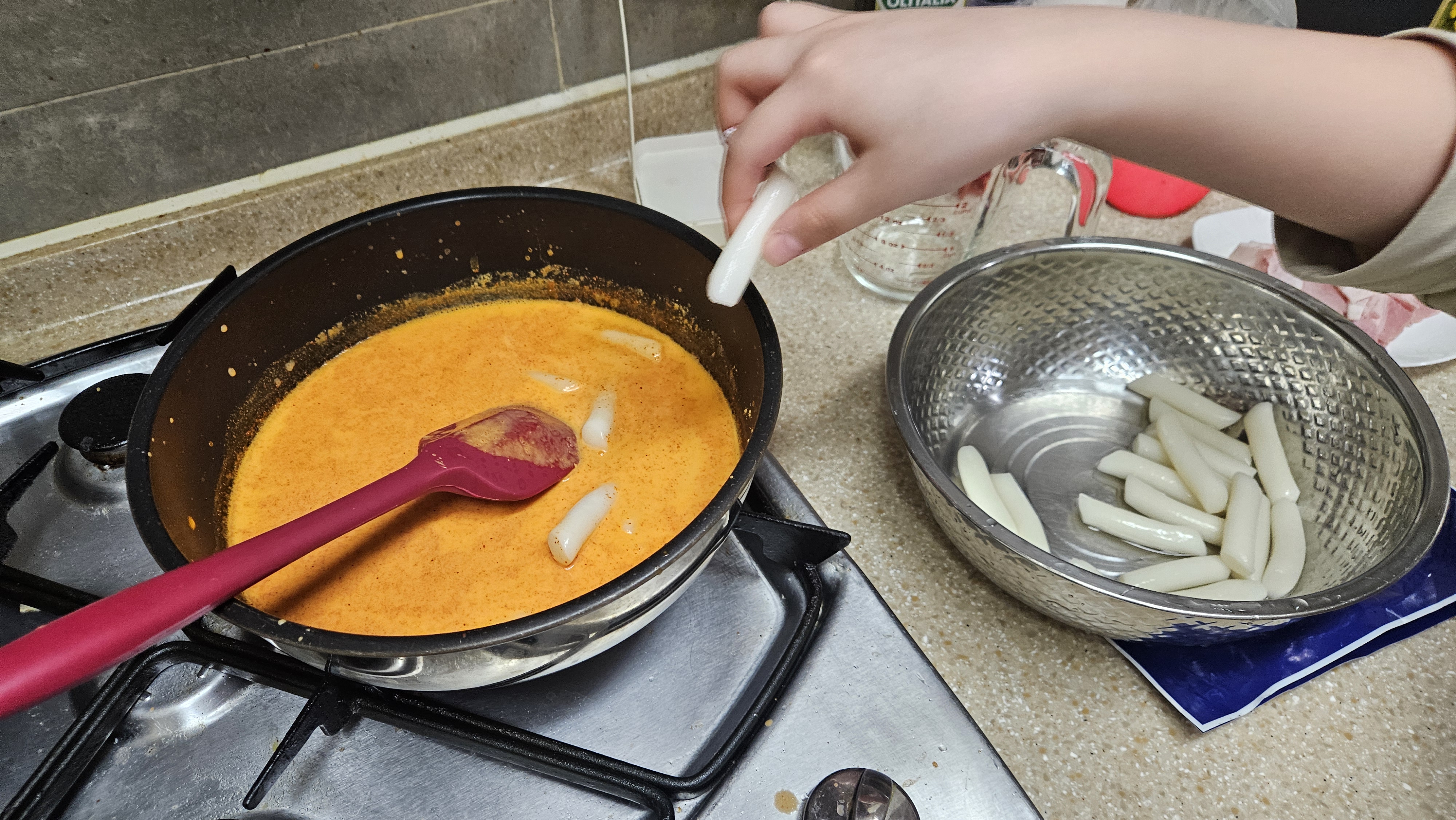 초등학생 자녀와 함께 만든 노브랜드 로제떡볶이